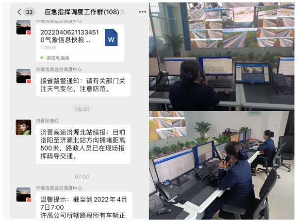 信息监控调度员是“口”,畅通信息渠道。他们始终枕戈待旦,及时传递信息,保障信息渠道畅通。接听社会大众电话,为大家提供地方疫情管控政策、交通管制、道路通行信息,方便大家出门;向收费站、路产大队、养护所传达最新指示、命令,保证一线单位迅速落实工作;沟通联系各业务部门,密切协调配合,全力应对突发事件。