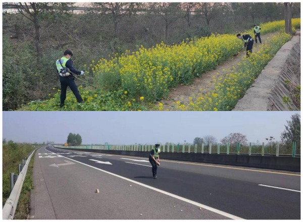 三是沿线清理违章种植。随着天气的变化,也正是高速公路控制区违章种植农作物的高发期。为维护高速公路路产路权,保障辖区路段安全和路域环境的美观,许禹路产管理大队对辖区高速公路沿线违法种植农作物进行全面排查清理。