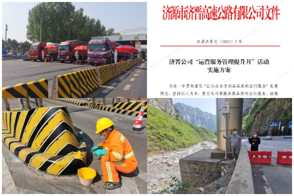 两抓共管促提升。一手抓收费现场管理,提升窗口形象。结合近期车流量较大的现状,公司所辖济源北收费现场全面清理垃圾、杂草、路面抛洒物,做到全面覆盖、无死角、无盲区。同时,采取错峰方式组织有关人员对收费站安全岛及隔离墩等油漆脱落、褪色的地方进行重新刷漆,有效维护站容站貌,美化收费环境。一手抓运营基础管理,提升服务品质。以开展“运营服务提升月”专项活动为契机,从“外树形象、窗口服务、业务技能、保畅能力”四方面着手,深入查摆自身不足,落实提升整改计划,不断提升运营管理水平。