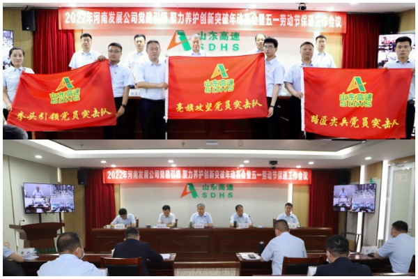 此次会议由公司领导、资产运营部相关人员、各权属单位负责人及养护负责人、施工、监理单位负责人共同参加。会议宣读了《河南发展公司2022年“党建引领,聚力养护创新突破年”专项活动实施方案》,施工、监理单位汇报了今年养护专项工程的准备情况,各权属单位就今年的方案落实和专项工程实施进行了表态发言,领导给各权属单位党员突击队进行了授旗。