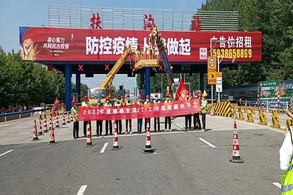 2022年5月20日上午,在河南许亳公司养护、路产、运维、信息、收费多部门协同配合下,河南许亳公司扶沟收费站雨棚改造交通布控工作顺利完成,标志着河南许亳公司2022年度养护专项工程正式开工。