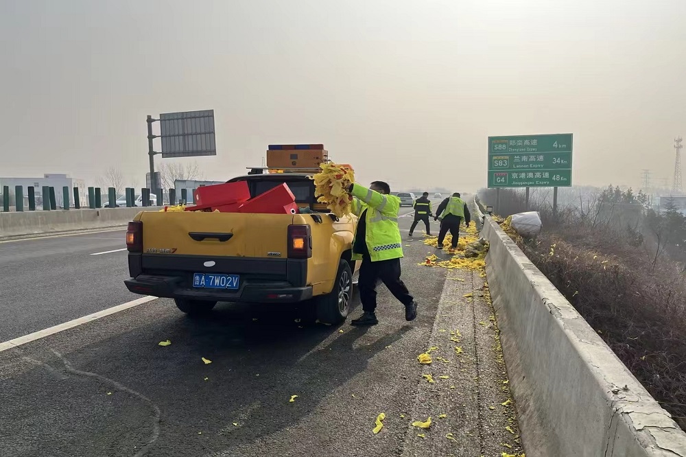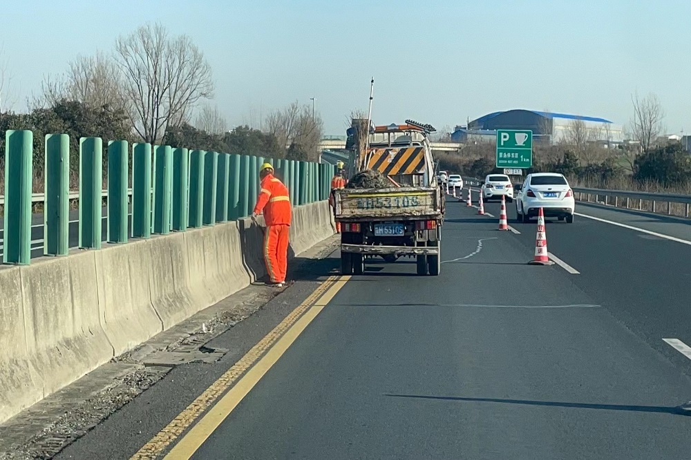 二是精准化整治路域环境。春季以来交通客流持续高位运行,针对路旁紧急停车带、边坡等部位的白色垃圾、抛洒物,采取在停车带设置垃圾桶8个,增派人手开展重点位置垃圾清理、桥下堆积物清运等行动,目前已累计清理垃圾、堆积物117.05立方米,有效保证路段环境干净整洁。