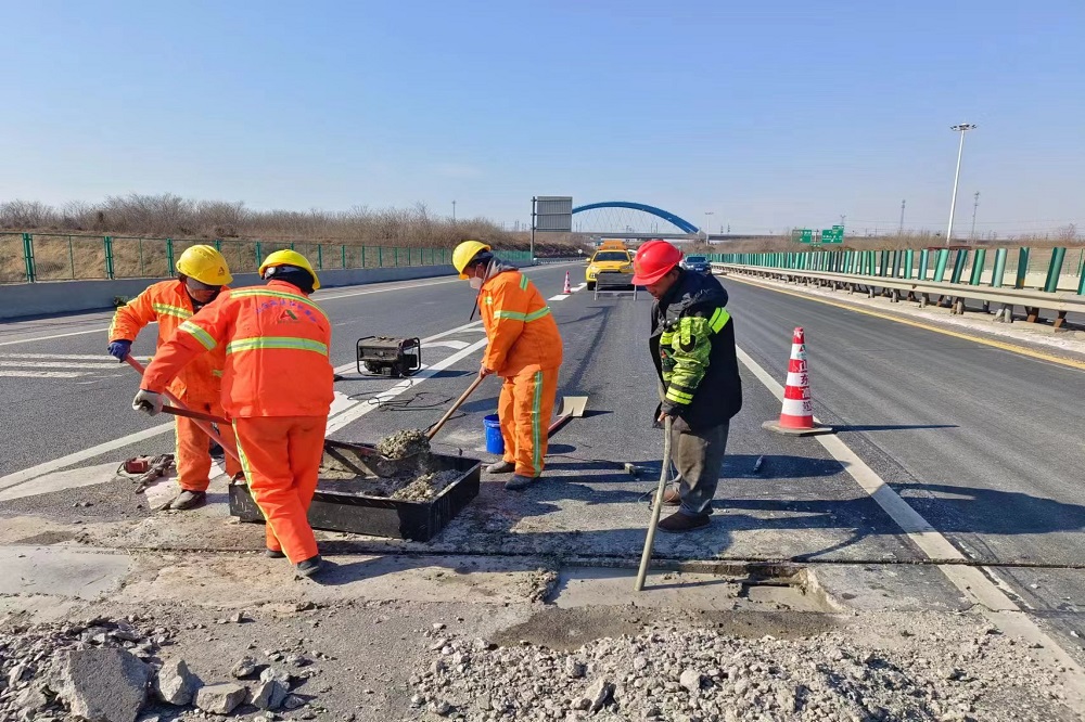 三是精准化治理路桥病害。通过对排查结果的定性、定量分析,及时掌握路段上、下行不同区域位置病害分布、严重程度、发展趋势等情况,突出集中、连片病害路段优先处治,量身打造治理方案,压茬推进坑槽修补、路面灌缝、水毁修复、反光膜更换、水泥砂浆喷涂等作业,目前已累计完成坑槽修补6处、路面灌缝9723.2米、水毁修复21处、反光膜更换3.2平方米,路桥病害治理达标率100%。