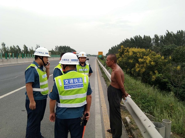 2018年9月6日路政巡查人员巡查至k286+800米下行时,发现一名上身赤裸男子在超车道上逆行,疾驰的车辆纷纷避让,此时情况十分危急,路政人员立刻停车示警笛并立刻上前制止,将男子引导至安全区域,经过耐心询问发现该男子精神异常,不能说出家庭详细住址,通过对该路段的分析,该男子应该是禹州北收费站附近的村民,我们的大队长张文亭考虑到情况的危险性,先将此人送下高速,以防发生交通事故,在送回路途中拨打了110,将此情况详细告诉至接警人员,接警人员通过我们对此人的体貌体征描述,接警人员告诉给我们一个好消息,该男子的家人已在派出所张贴了寻人启事,家里人已寻找了两天了,杳无音讯,听到这个消息,大家悬着的心一下着了地,驶出了高速我们一边等派出所同志,一边给该男子寻找一些食物。通过与派出所的同志交谈该男子的家人在附近能找的地方都找了,怎么也想不到在高速上,两方都表示以后应多加强联动,为人民群众办好事,让社会充满爱。(河南许禹公司:江双建)