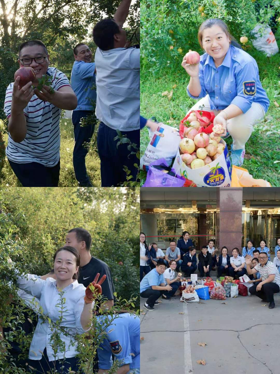 经过一个多小时的努力,采摘活动顺利结束,这时再看,已是筐满袋流了。届时,公司以部门为单位,把石榴分发到了每名员工手中,员工们喜不自胜,全然忘记了流了多少汗,心中留下的是劳动的满足和合作的喜悦。石榴采摘活动在全体员工中的欢声笑语中成功落下了帷幕。