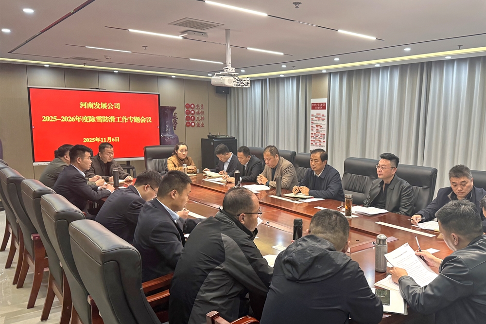 近日,河南发展公司组织召开2025-2026年度除雪防滑专题会议,公司主要领导、业务分管领导、各基层管理单元及交建集团四公司相关人员参加会议。